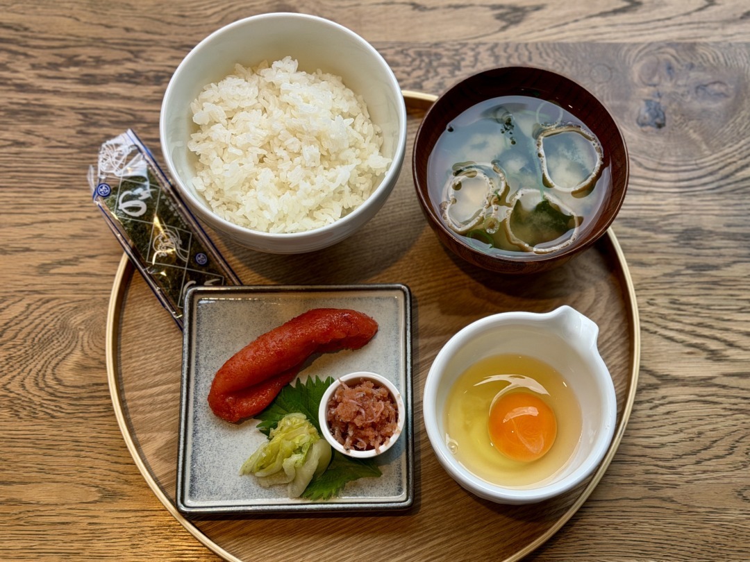 人気の「めんたいボウル」はごはん、味噌汁、小鉢、こだわり玉子、食べ放題の明太子が2種類ついてなんと480円!