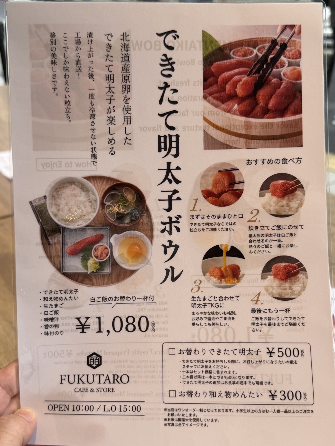メニューは「できたて明太子ボウル」のみ。
