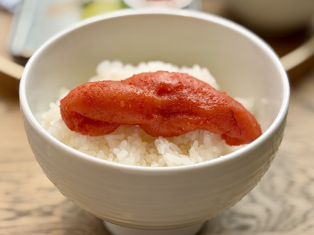 1.まずは明太子をそのまま食べて、できたて明太子の粒立ちを味わう。