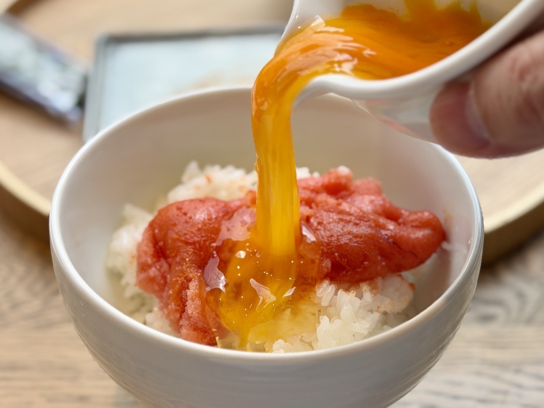 3.生たまごと合わせて明太子TKGに←ここで明太子を全部使ってはだめ。