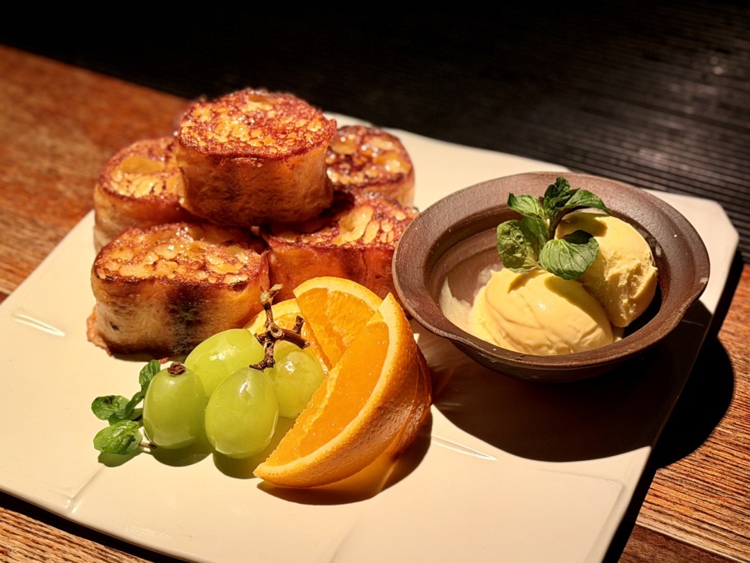 ほかにも、イタリア産小麦粉を使った薄焼きの「パリパリのマルゲリータ」(2,398円)や、外はカリッと中はふんわりと仕上げた「フレンチトースト」(2,046円)も人気だ。