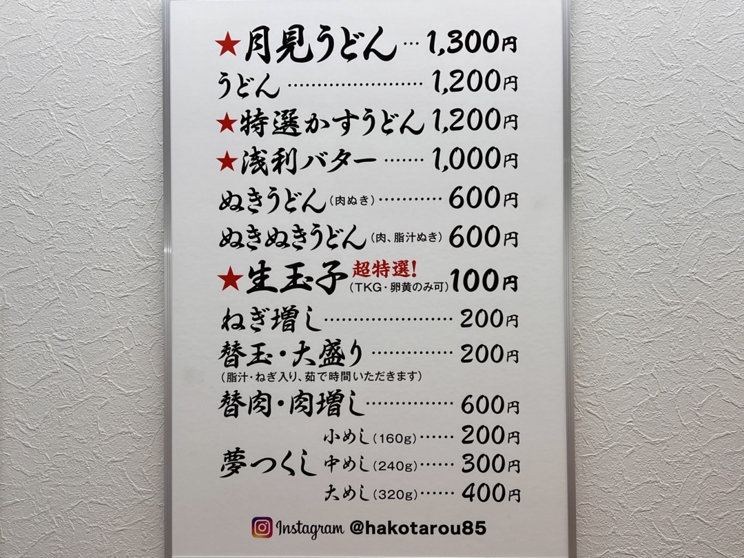 「Walkerplus ウォーカープラス」の連載「デビ高橋がおすすめする福岡でおいしいごはんを食べるならこのお店!〜うどん箱太郎編〜」で詳しく書いていますので、是非読んでみてください。