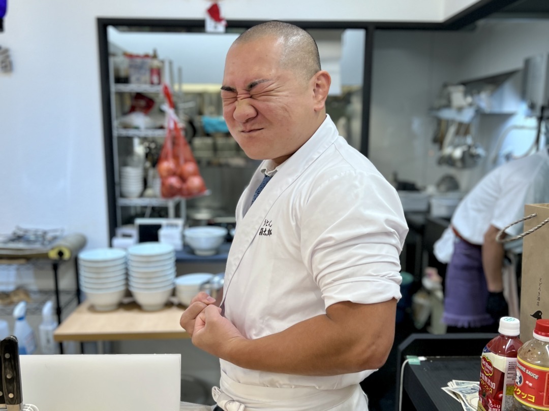 店主いわく、「うどんの旨さは腕の太さに比例するんです」(笑)。