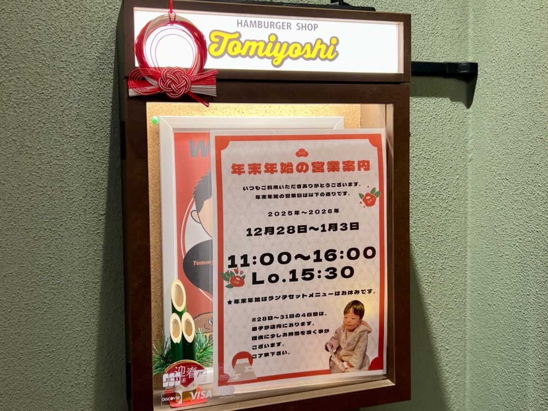 2025年12月28日〜2026年1月3日までは昼営業のみで、11:00〜15:30(LO)となっている。
