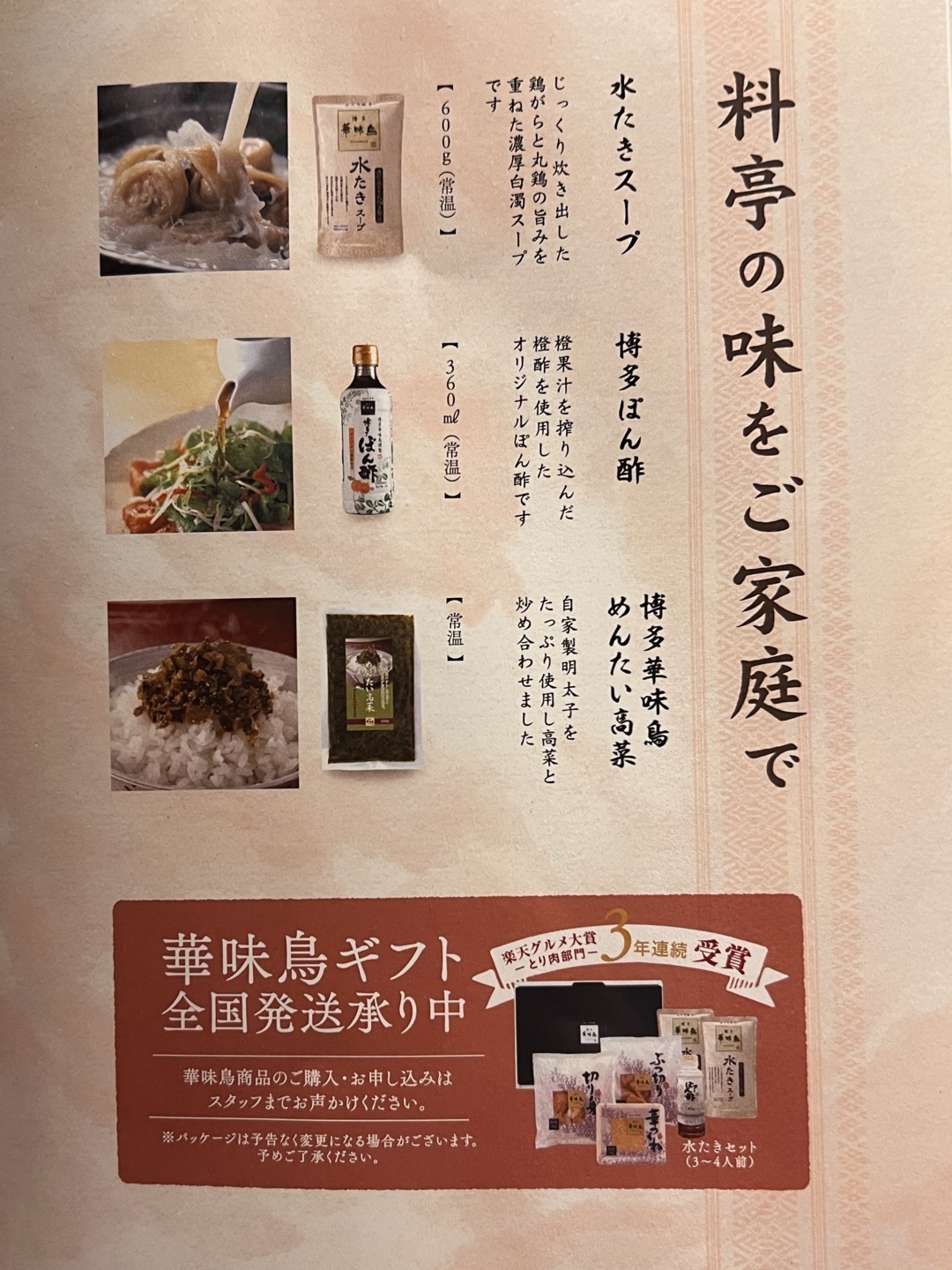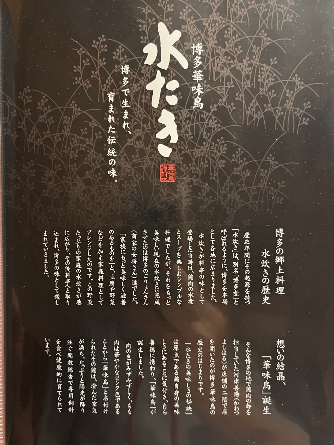 寒くなってきたので「博多華味鳥中洲本店」で博多名物の水炊きで温まった。
