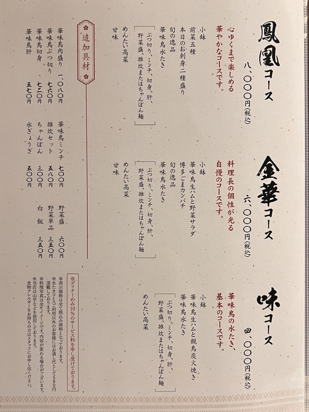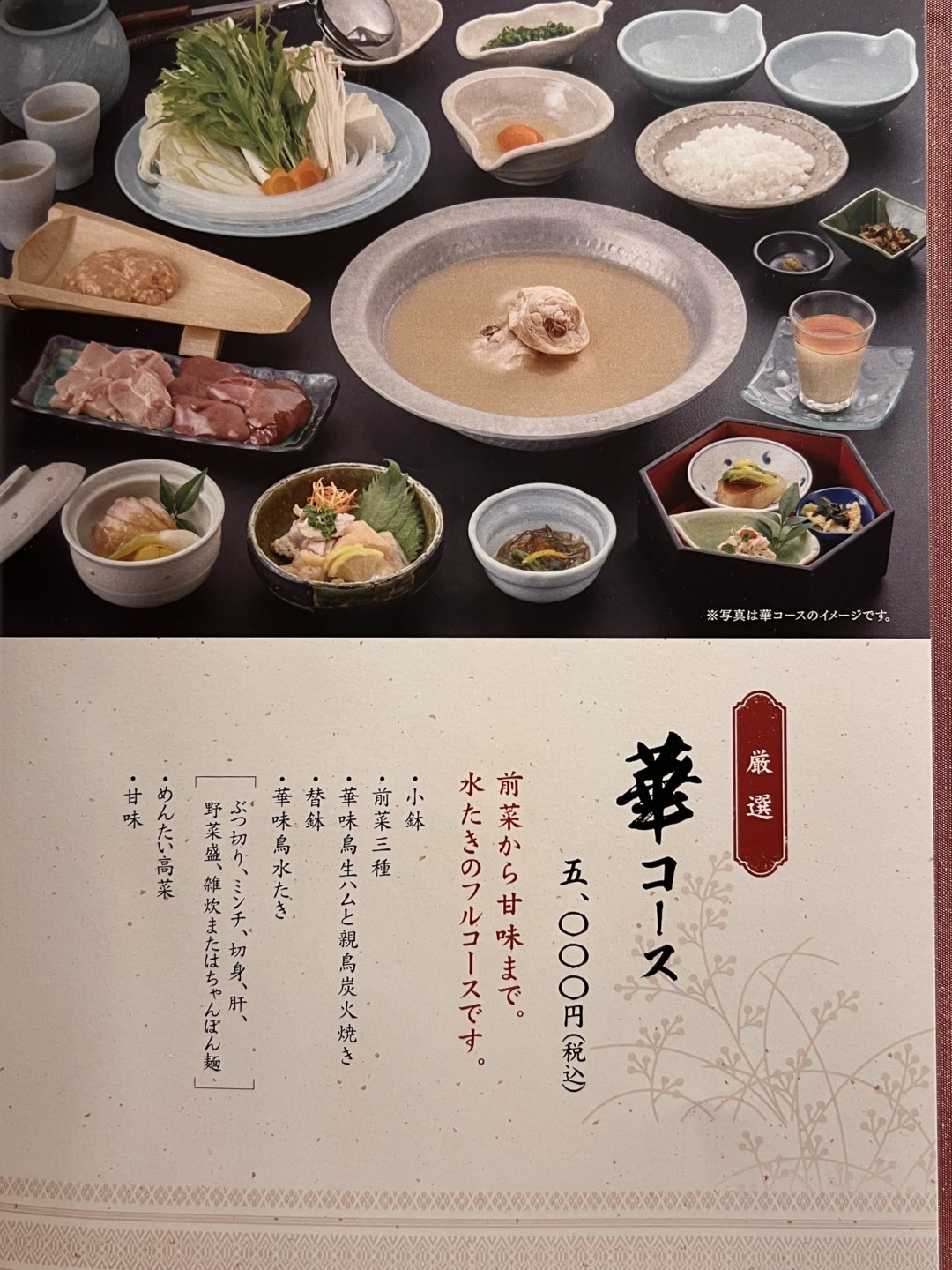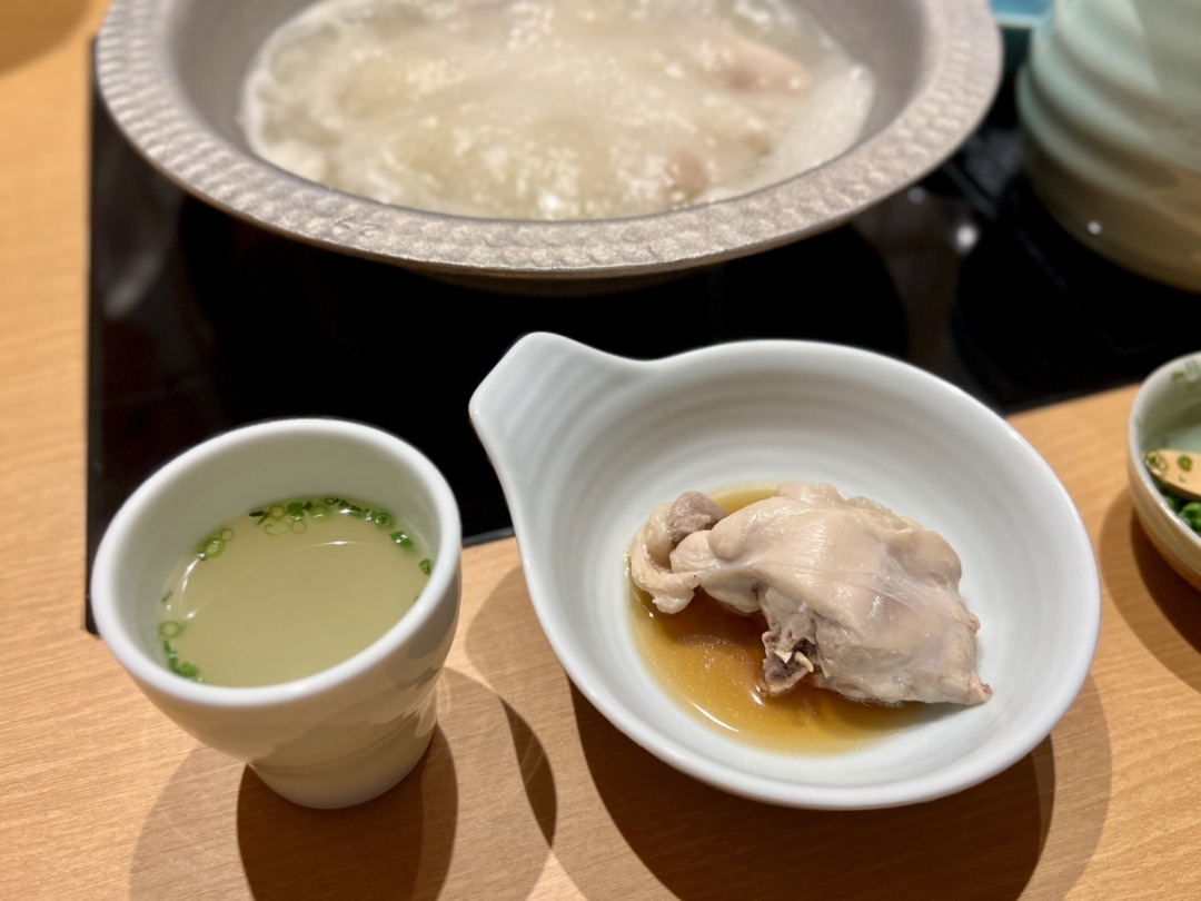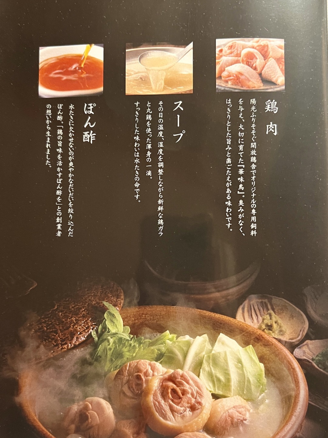看板メニューの「博多華味鳥水たき」は、新鮮な鶏ガラと丸鶏をじっくり煮込んだ濃厚スープが主役。
