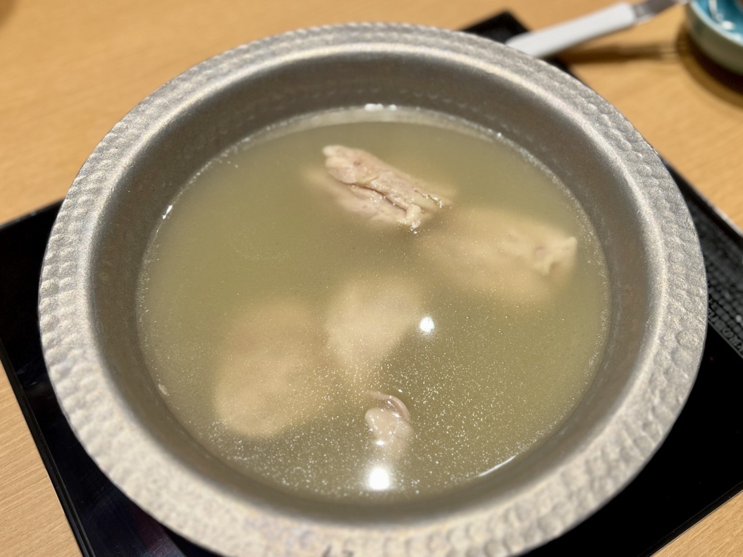 最初はシンプルだったスープが、鶏肉や野菜の旨みが重なり合い深みを増していくのだ。