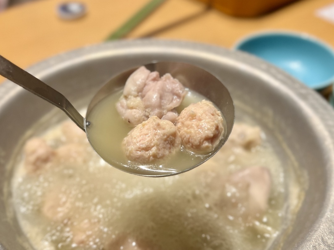 水炊きで鳥肝、ハツとか初めて食べたが美味い。