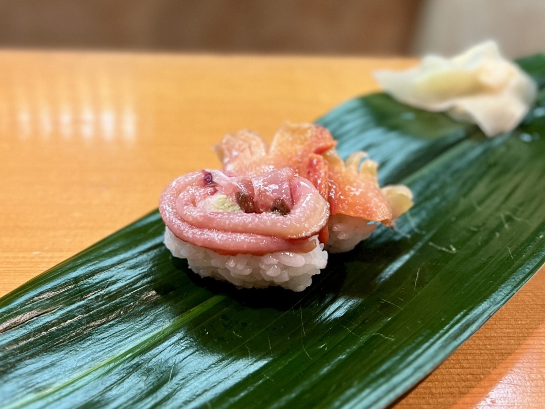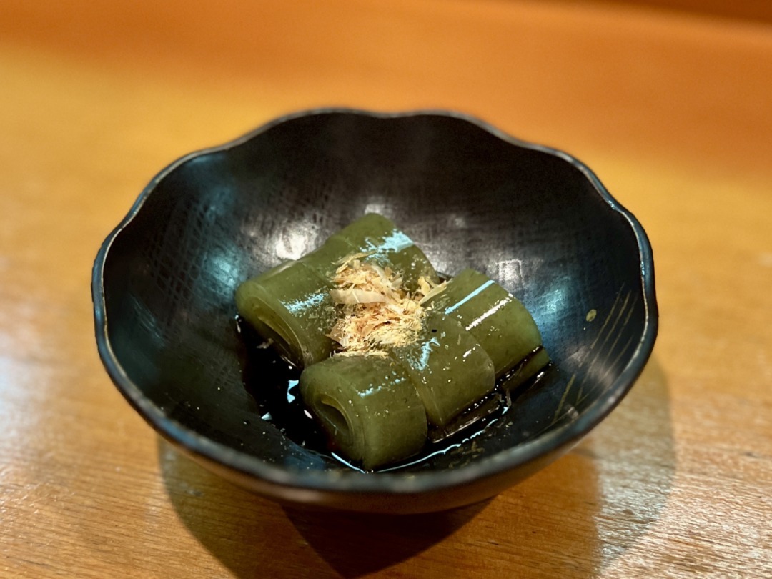3年ぶりに「寿司割烹 ひびき博多」へ。創業35年以上の老舗で、“塩で食べる寿司”が名物。鯛のこつ蒸しや振りなまこなど、一品料理も相変わらず絶品。店主の曽根さんご夫婦の温かい人柄に癒やされる、変わらぬ名店だ。