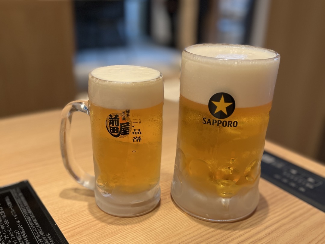 そしてこの鍋には、ジョッキも迫力満点の「男気生ビール」(1,298円)が相性抜群!