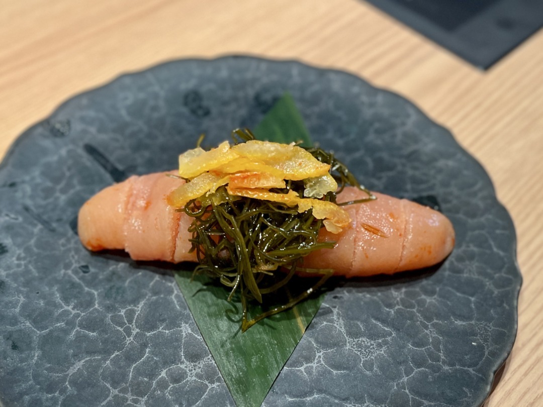 定番人気の「前田屋自家製明太子」(1,078円)は昆布締めで旨味が凝縮。