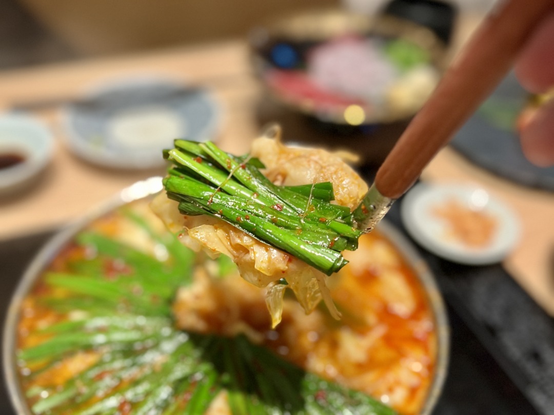 普段は味噌や醤油ベースを選びがちだが、この辛もつ鍋はクセになる美味しさ。