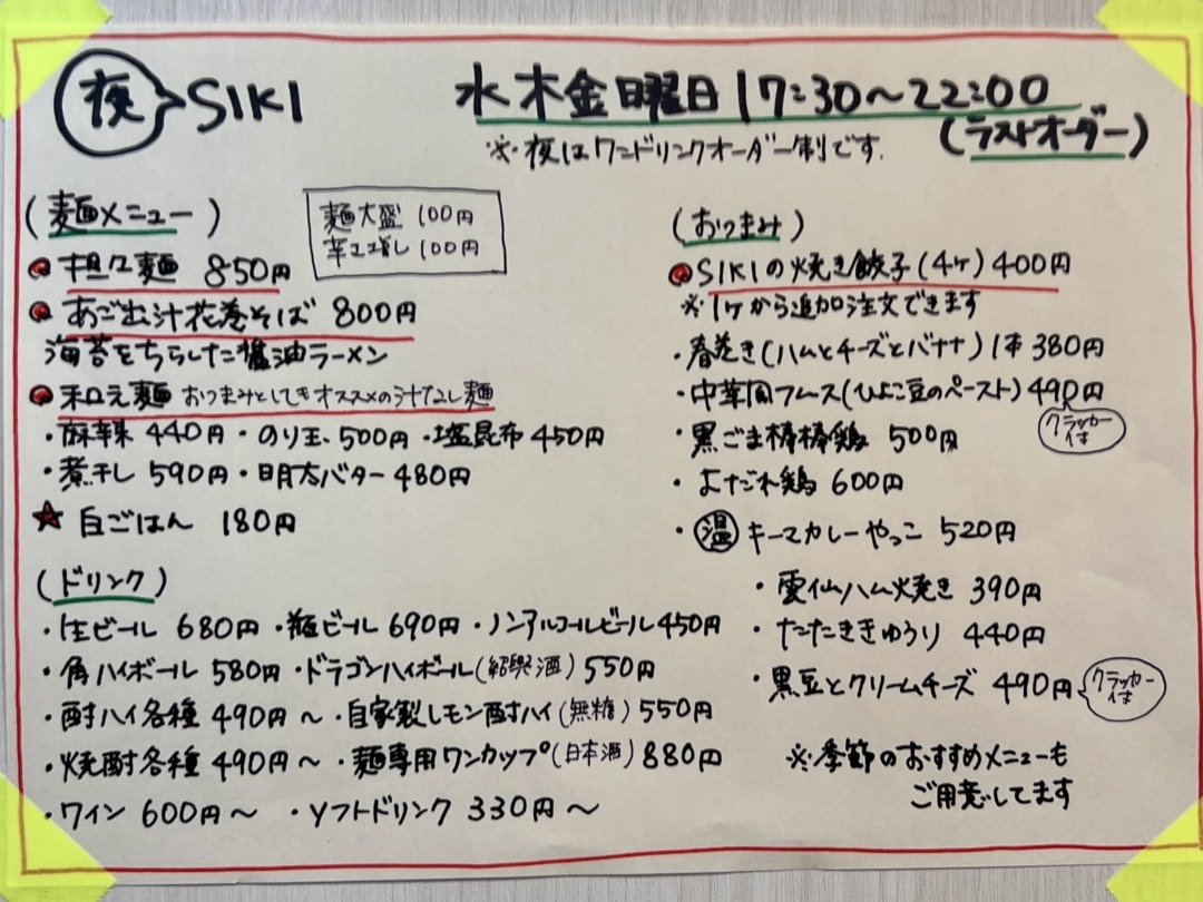 久しぶりに舞鶴の「おめんや SIKI」へ。