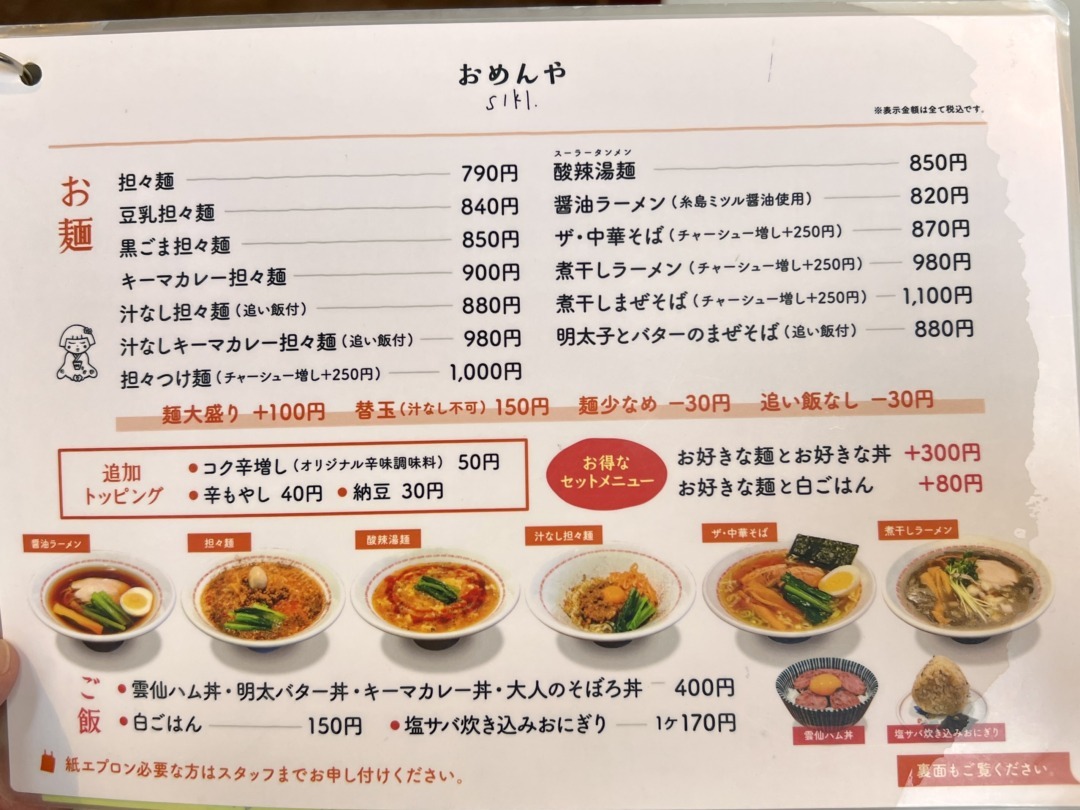 1/18にオープンした『おめんや SIKI』は警固にある『魚串うず』の姉妹店で、『魚串うず』のランチで提供していた「担々麺」が食べられるよ。