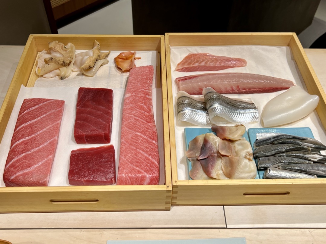 例えば、この時期ならではの アオリイカとスミイカの食べ比べ。