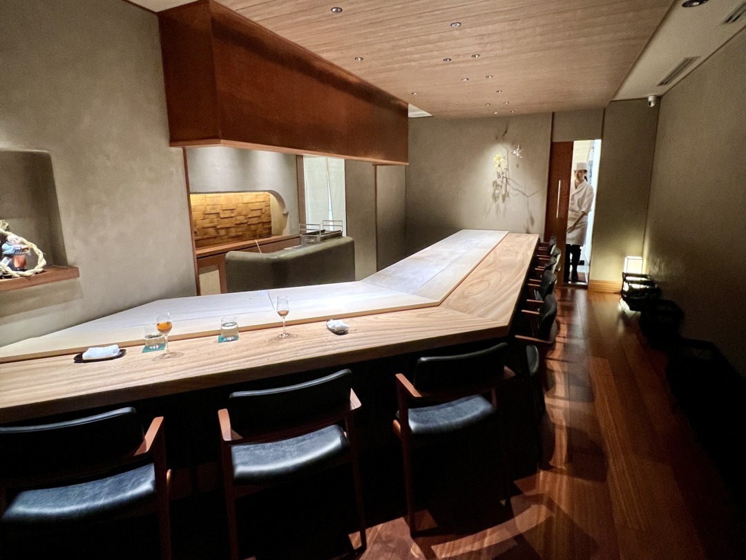 店内はカウンター9席のみのコンパクトな造りで、程よい緊張感と距離感が心地よい。