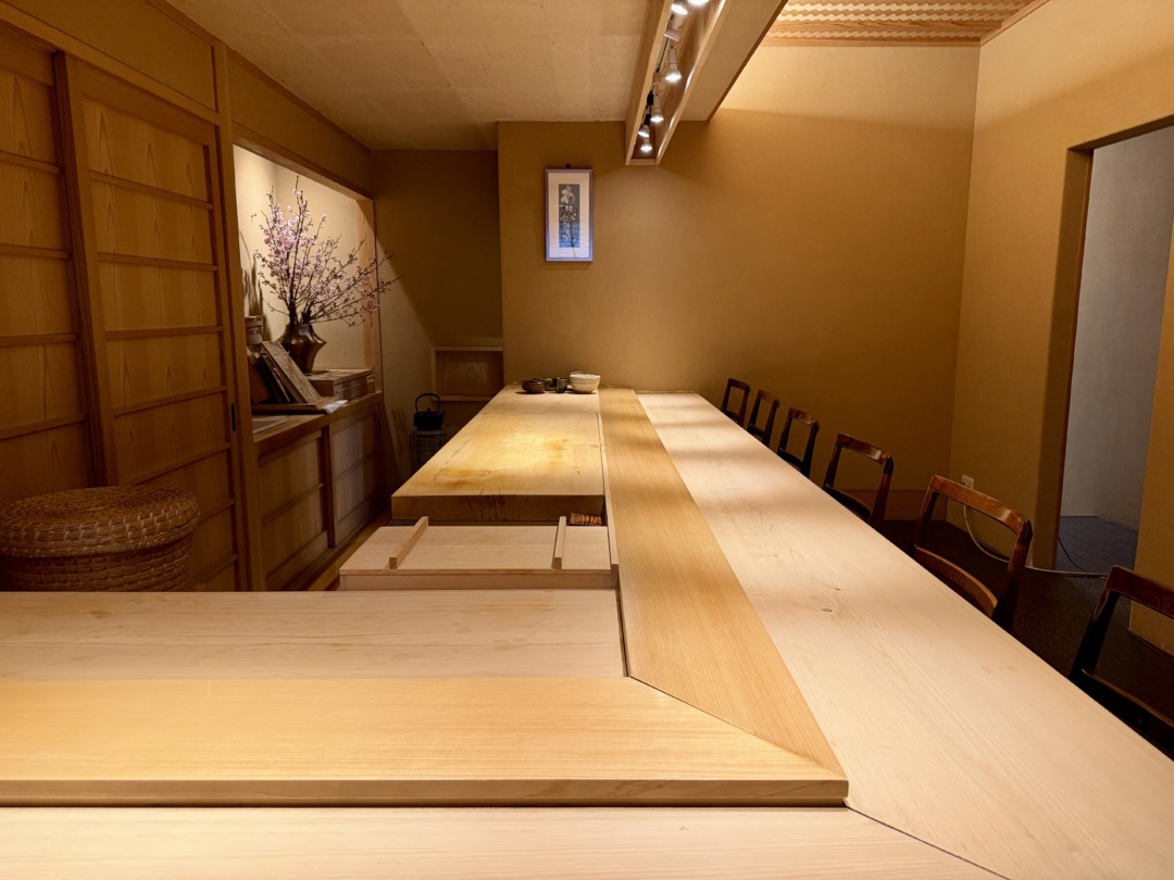 カウンター9席のみの静かな空間で、余計なものが削ぎ落とされている。