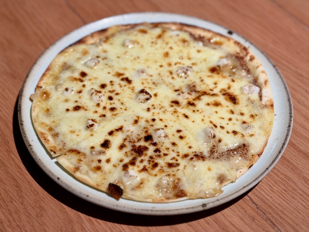 そのペーストにキノコとふぐの身を合わせて焼き上げたのが、この真子ピザだ。