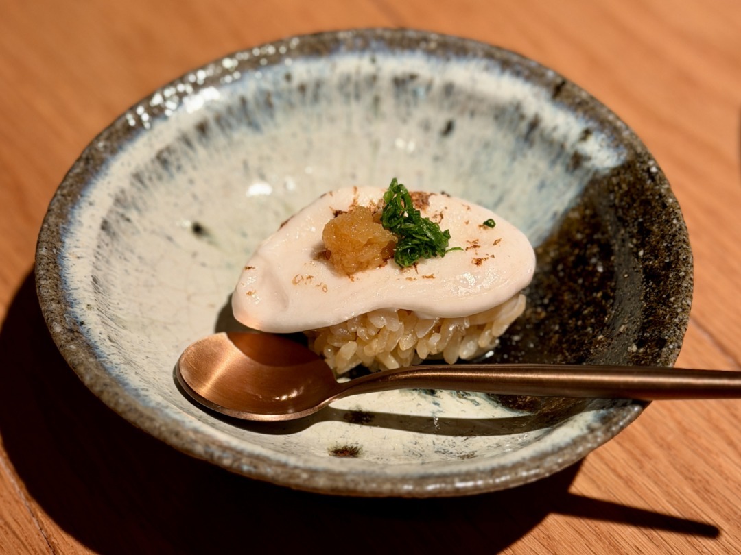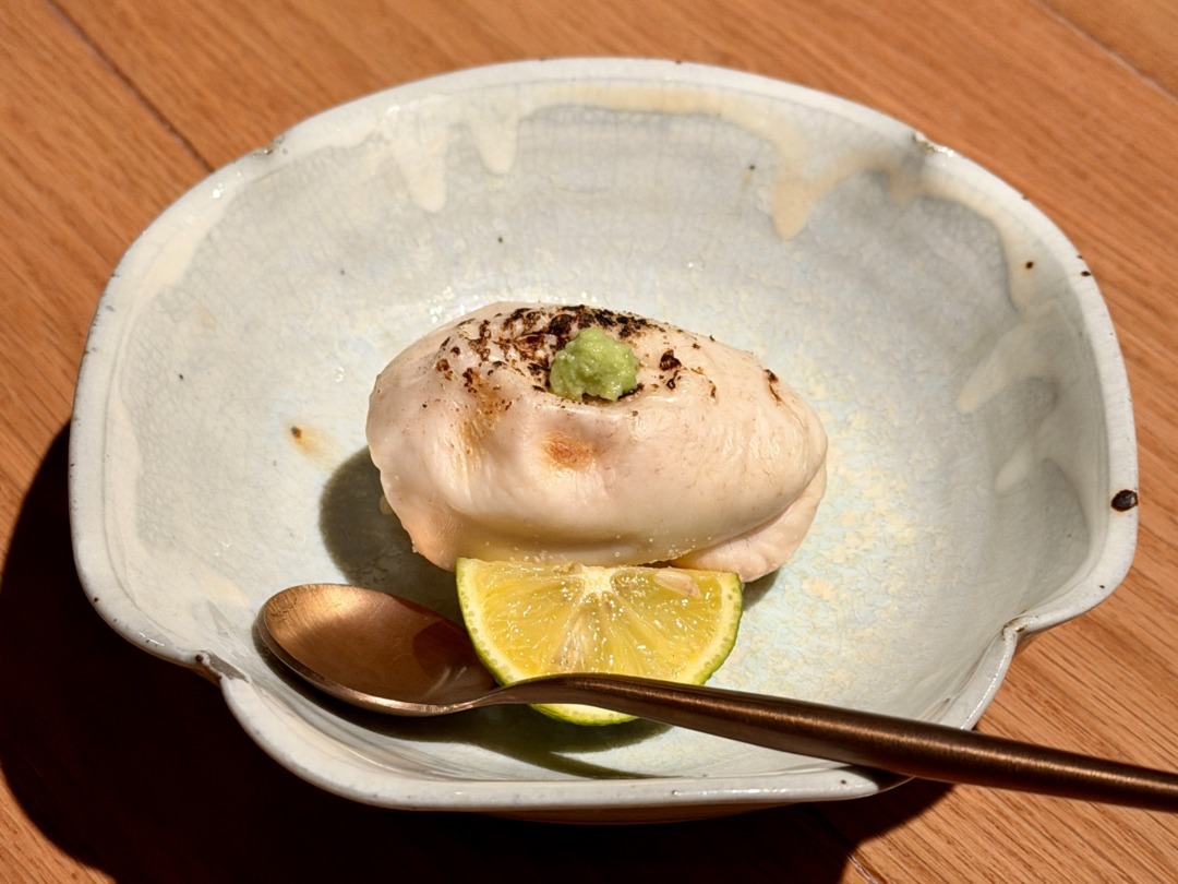 1月~3月が旬の「焼き白子寿司」(2,000円)は濃厚でクリーミー。