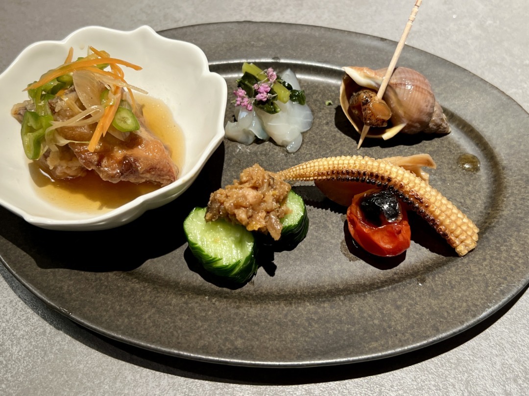 古民家の雰囲気のなかで、ちょこちょこと料理を食べられるのは楽しいね。